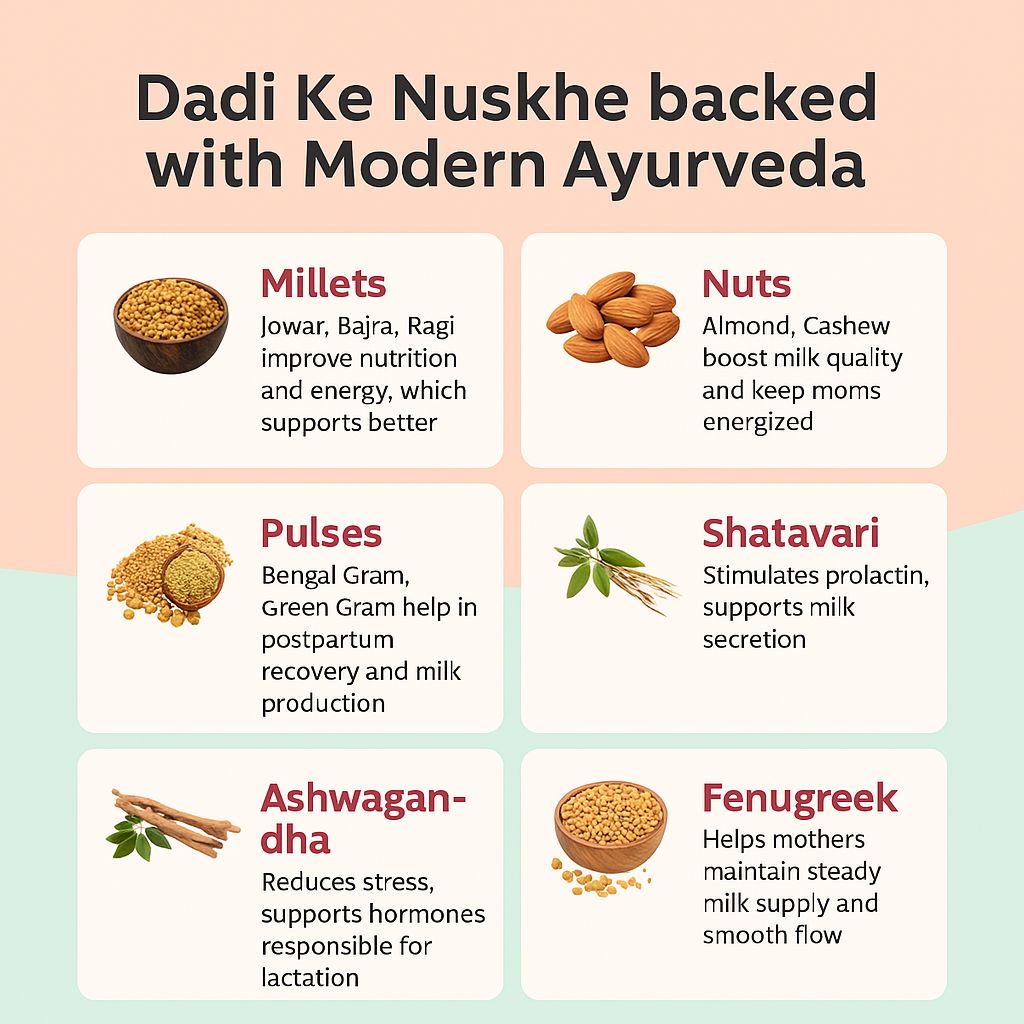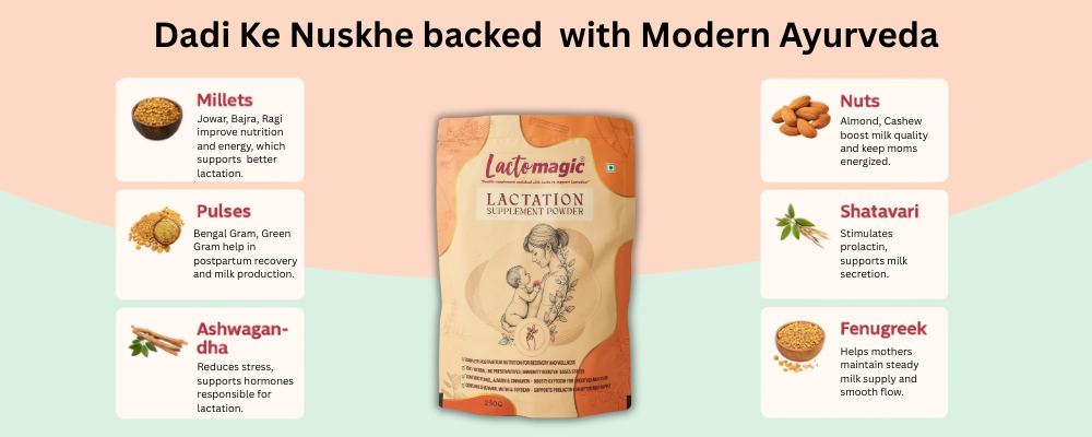 A: Yes! Apart from boosting milk supply, Lactomagic’s blend of millets, nuts, and herbs provides essential protein, iron, calcium, and vitamins—helping you regain energy, strengthen immunity, and bounce back faster after delivery.