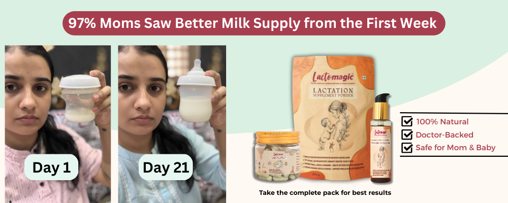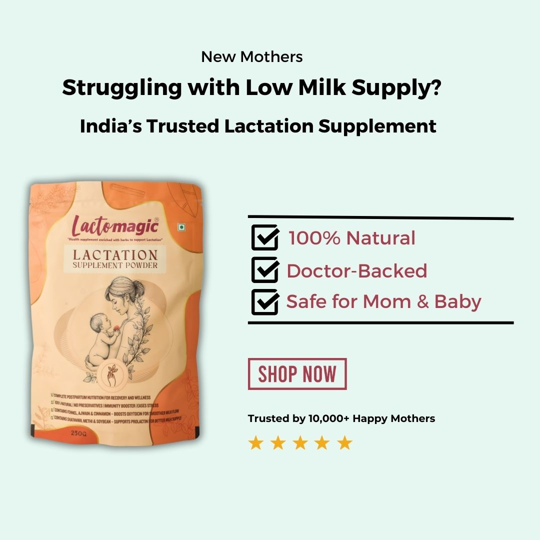 A: Mix 2–3 tablespoons of Lactomagic powder into warm milk or water, twice or thrice daily, as part of your breastfeeding routine. Optionally, pair with Lactomagic tablets and massage oil for enhanced lactation support.