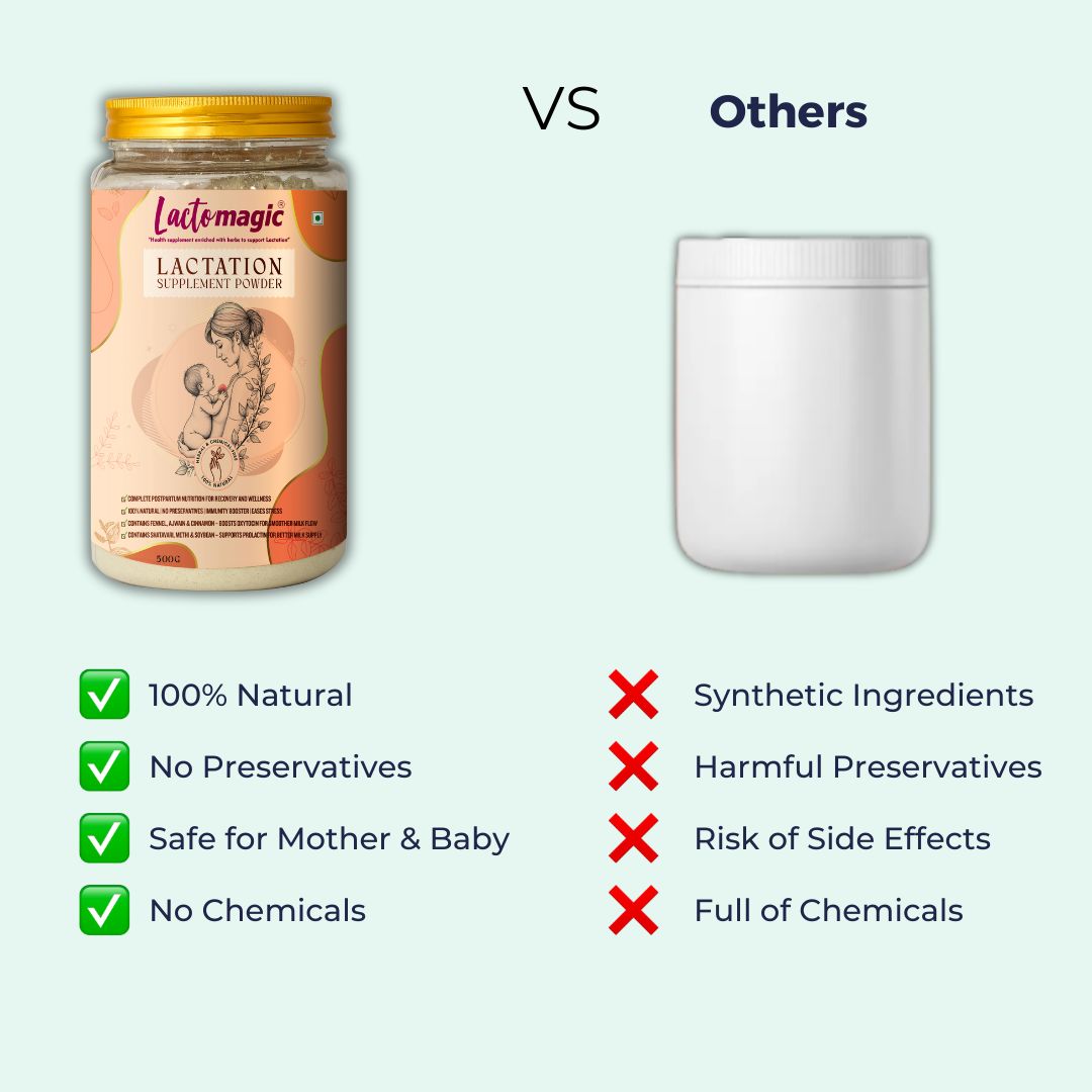 A: Unlike formulas that rely on sugar or artificial additives, Lactomagic is 100% natural and preservative-free, formulated by doctors and lactation consultants. It delivers clean, Ayurvedic nutrition with no smoothies of refined sugar.