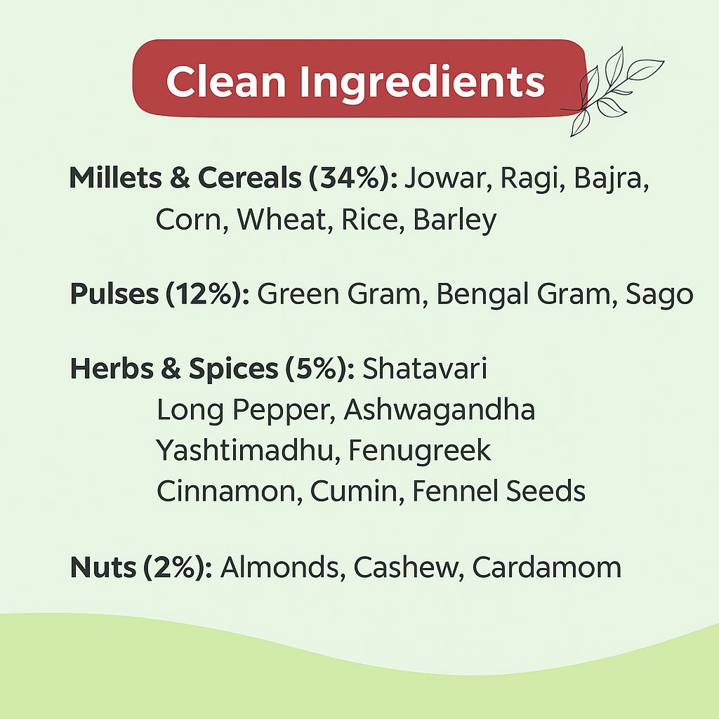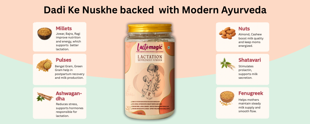 A: Yes! Apart from boosting milk supply, Lactomagic’s blend of millets, nuts, and herbs provides essential protein, iron, calcium, and vitamins—helping you regain energy, strengthen immunity, and bounce back faster after delivery.